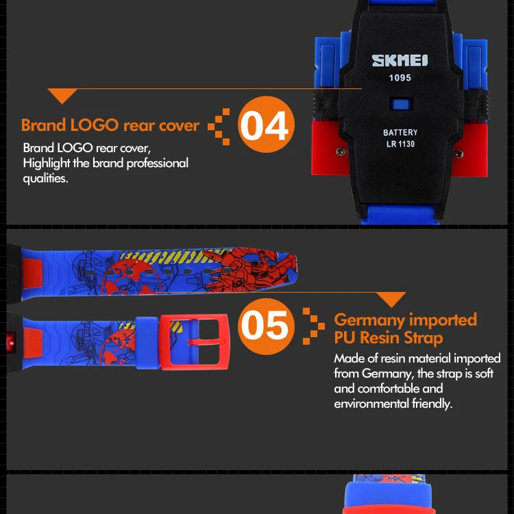 SKMEI Kids Watches LED Digital Children Cartoon Sports Watches Robot Transformation Toys Boys Wristwatches montre enfant 1095